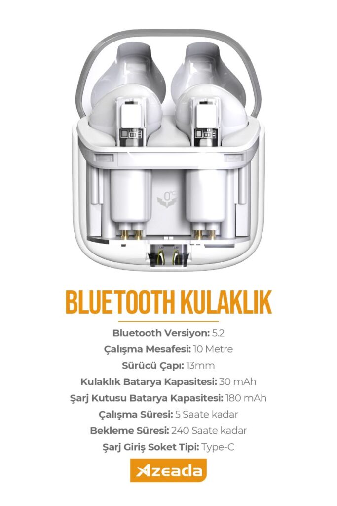 Azeada AZ-BT13 TWS Bluetooth Kulaklik Beyaz Renk