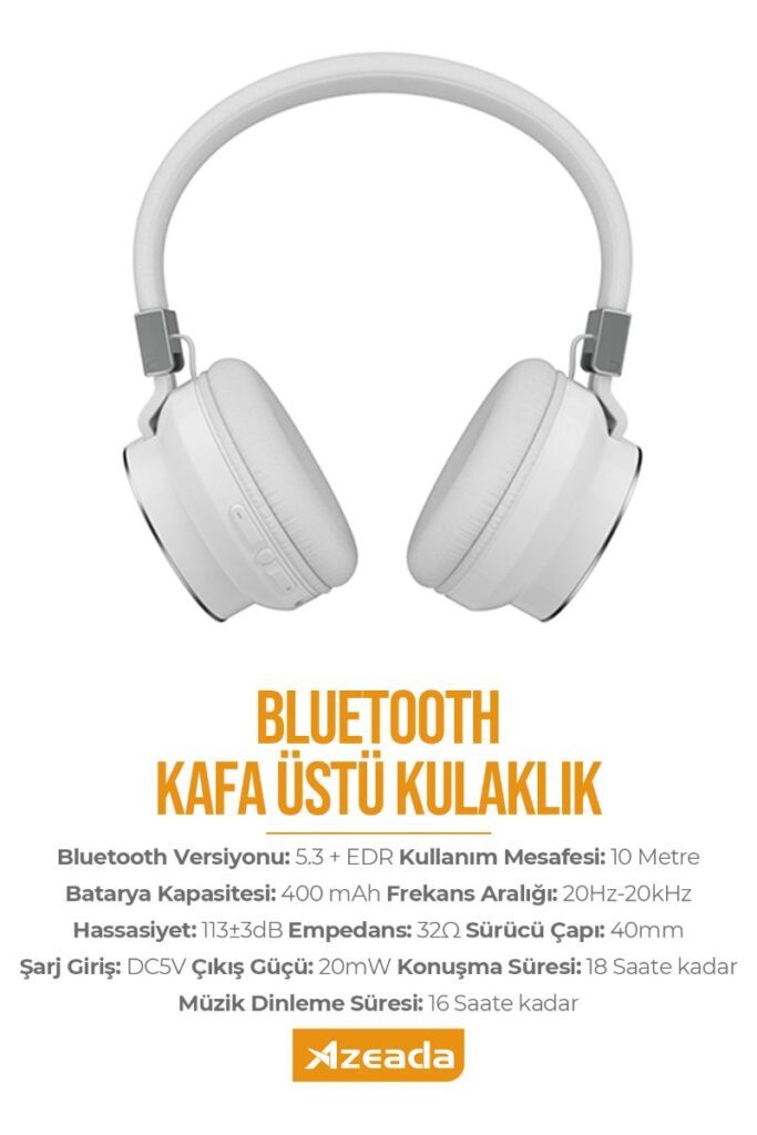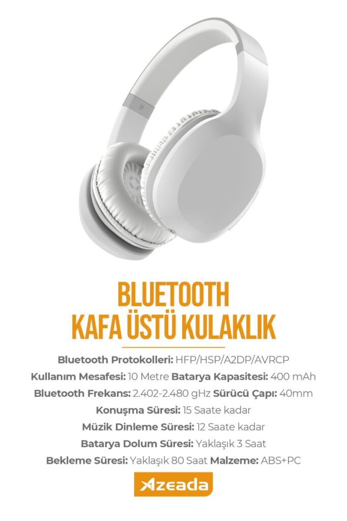 Azeada PD-BH400 Kulaküstü Bluetooth Kulaklık Beyaz kulaklık