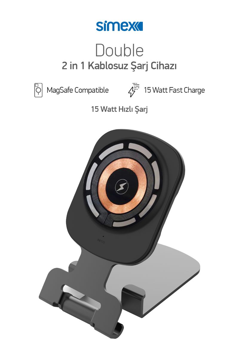 Simex SPS-14 Double Wireless Magsafe 2in 1 15 Watt Sarj Cihazi
