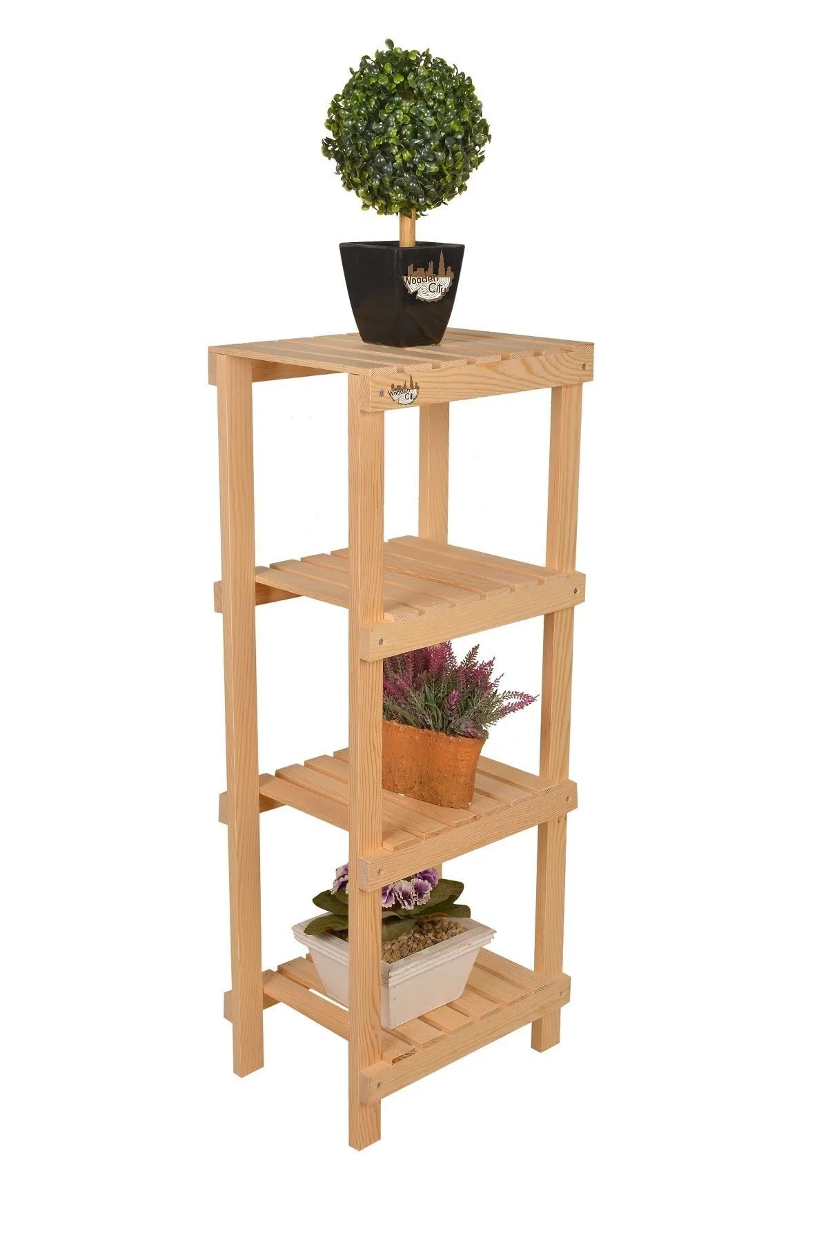 Wooden City Ahşap Çubuklu 4katlı Masif Ayakkabılık Raf